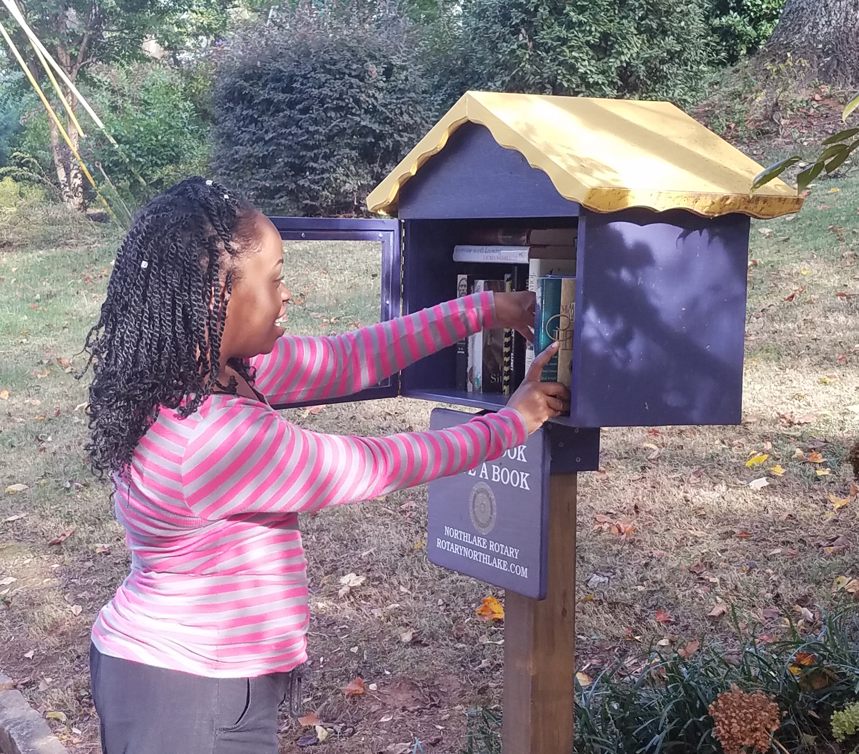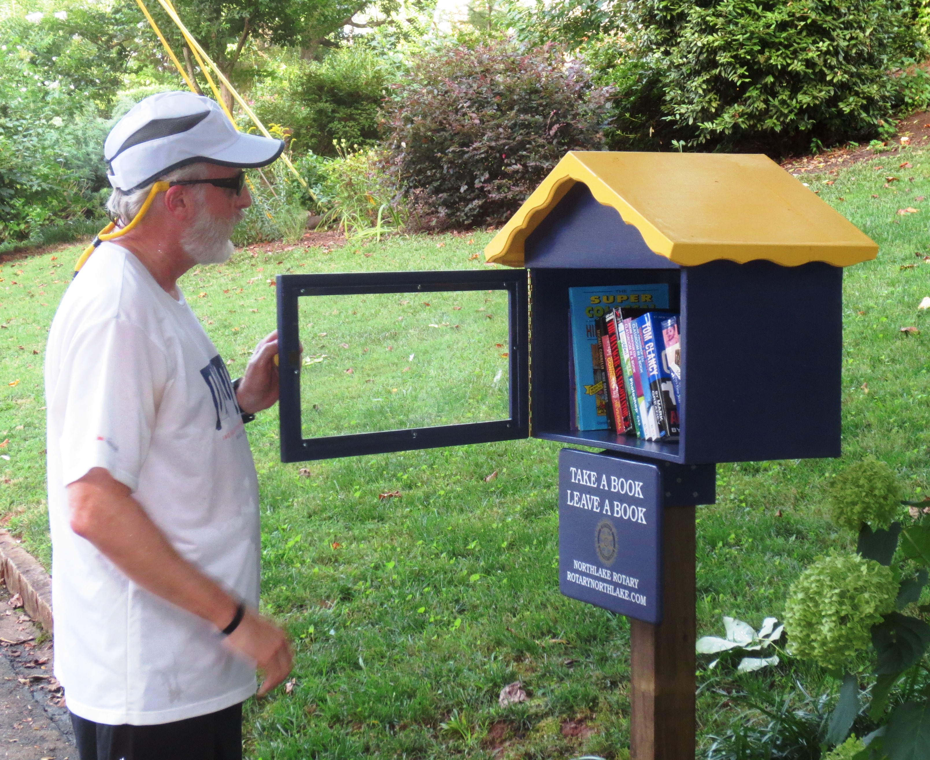 Installed a little library built by one of our club members in the front yard of a club member .Community members pick up book,leave a book or return a book .Project is very popular.