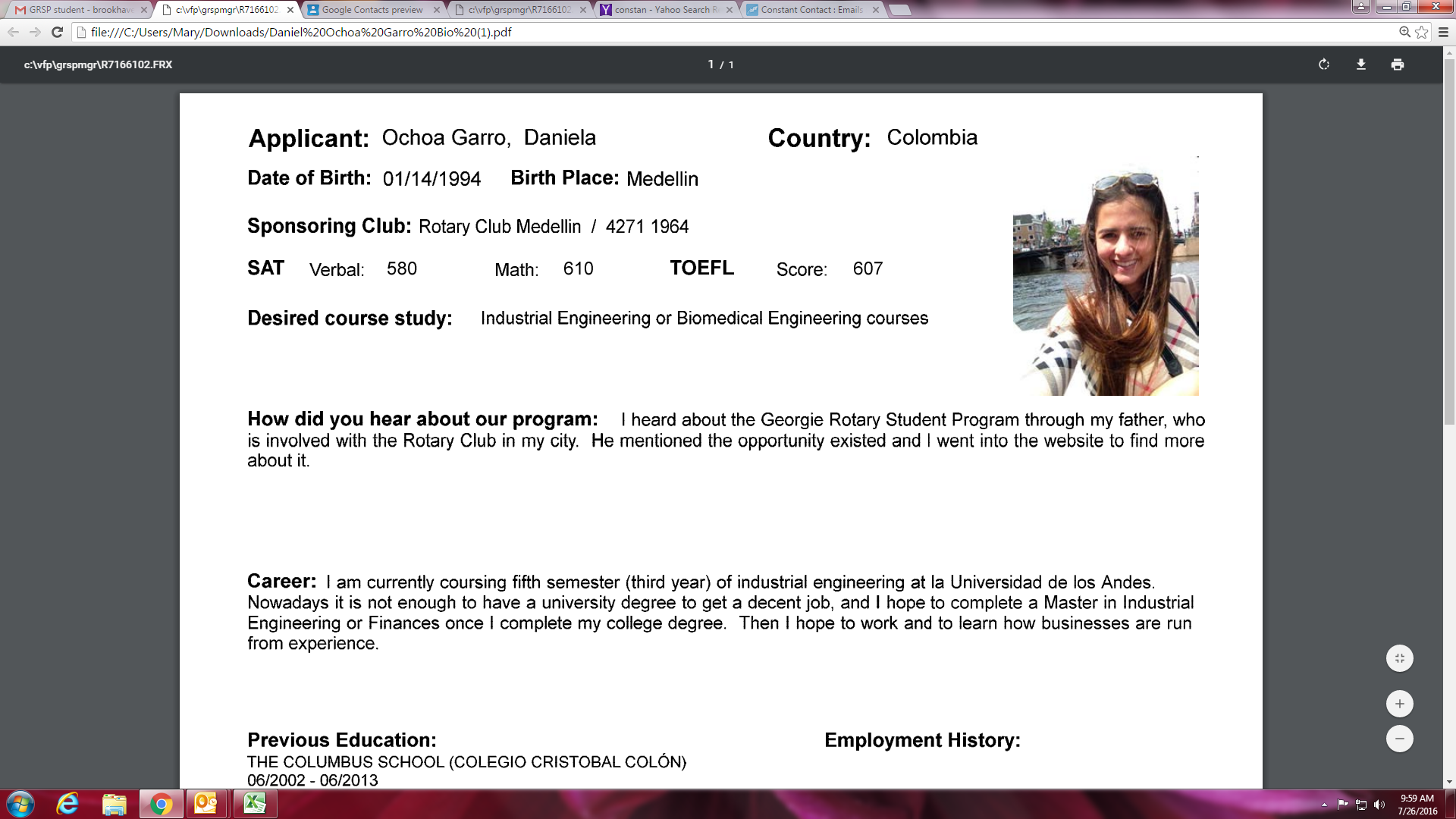 Daniella Ochoa Garro attended Ogelthorpe University and was sponsored by the Rotary Clubs of Brookhaven, North Atlanta and Tucker.