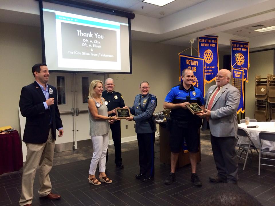 On July 15th the Rotary Club of Alpharetta awarded Officers Amanda Clay and Alan Elfreth the inaugural Public Safety Service Above Self Award. The Alpharetta Rotary Club donated funds and volunteers to the iCan Bike Alpharetta event. This event is organized by Officers Amanda Clay and Allen Elfreth with the Alpharetta Police Department. They werepresented with the inaugural “Service Above Self” awardgiven by Alpharetta Rotary because of their time and efforts dedicated to iCanBike.