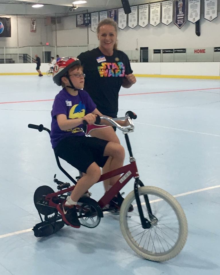 Each year iCan Bike Alpharetta helps children with disabilities learn how to ride a bike. With the help of local volunteers and specially adapted “roller bikes”, the forty riders work towards the goal of riding a bike unassisted during daily 75-minute sessions over the course of a week.