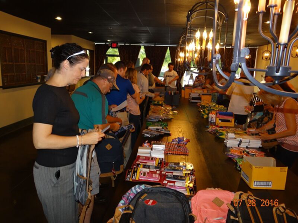 The Alpharetta Rotary Club, in partnership with the North Fulton Rotaract Club, raised $1750 to buy backpacks and supplies for children served by North Fulton Community Charities. Members of both Clubs, along with their family and friends, gathered to stuff 65 backpacks with a variety of school supplies on July 28, 2016 at Abbey of the Holy Goats. Alpharetta Rotarian, Karen Hipes, and North Fulton Rotaractor, Tori Alterman, were the co-organizers for the Backpack Project.