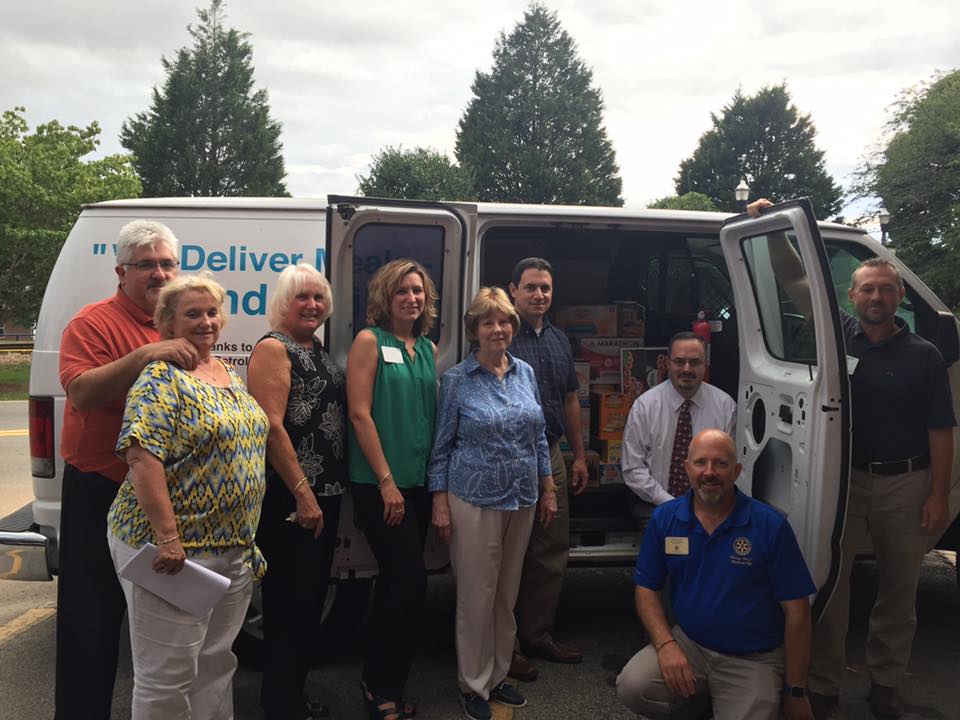 Members stand in front of the van that was packed full with food items for Meals On Wheels