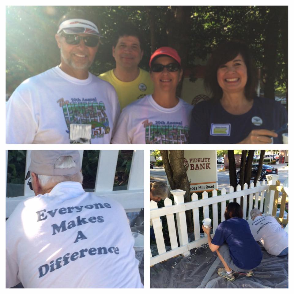 Approximatey 10 Rotarians and spouses partnered with other local community groups to prime and paint new fences at the Historic Society building at the heart of Vinings.