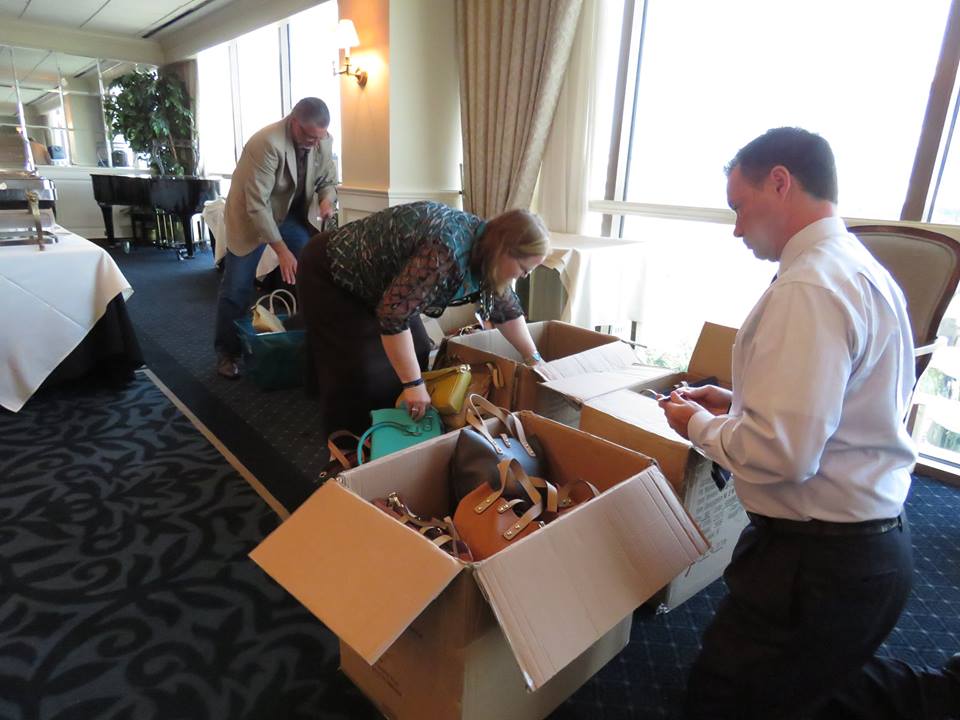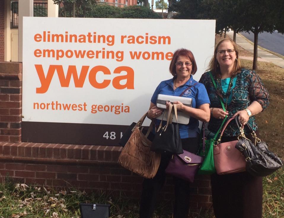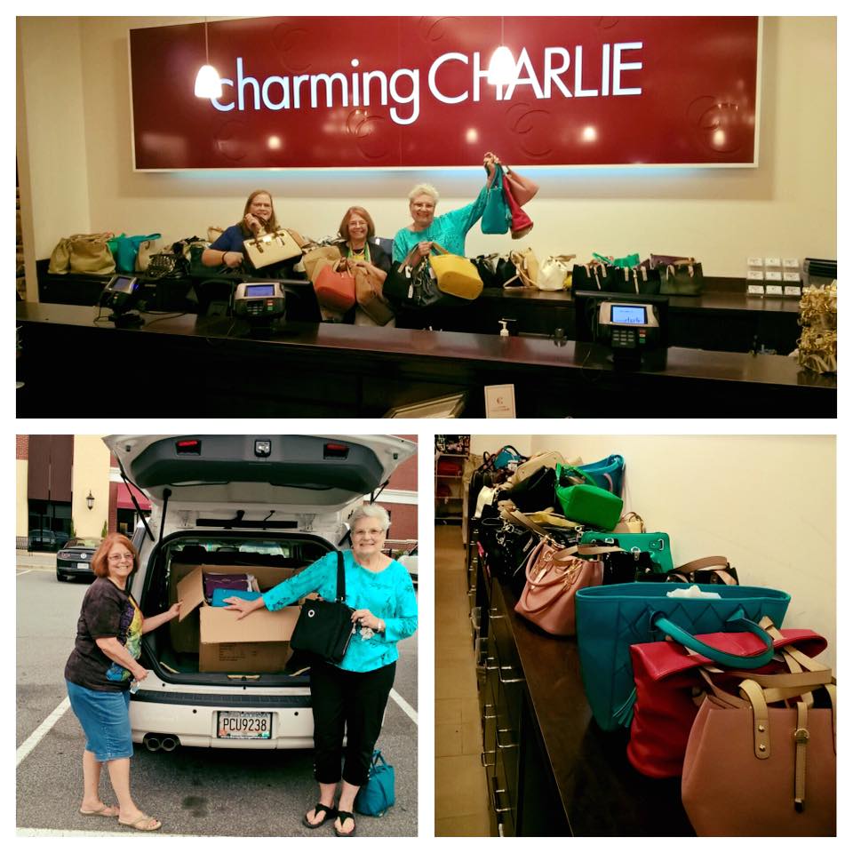 Rotarians PP Debby, Ann and Suzanne carefully select and purchase 73 new purses that will be filled and delivered to domestic violence victims in Cobb County.
