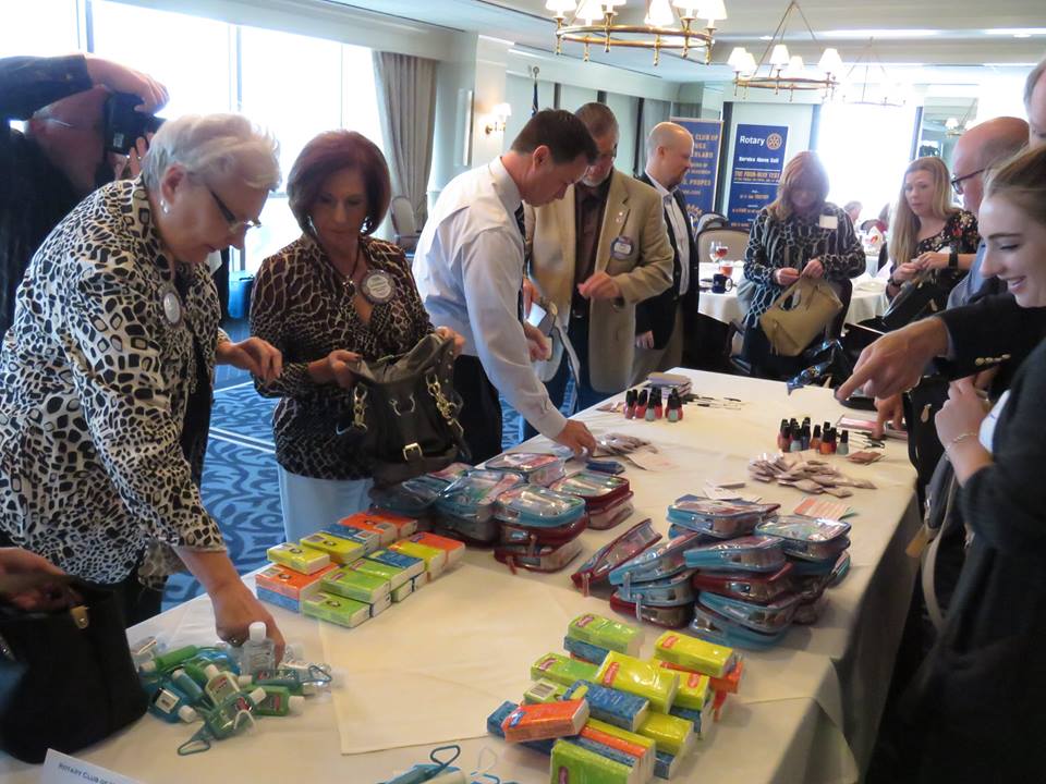 Rotarians filled each of the 73 handbags with approximately 20 new personal hygiene and supplies