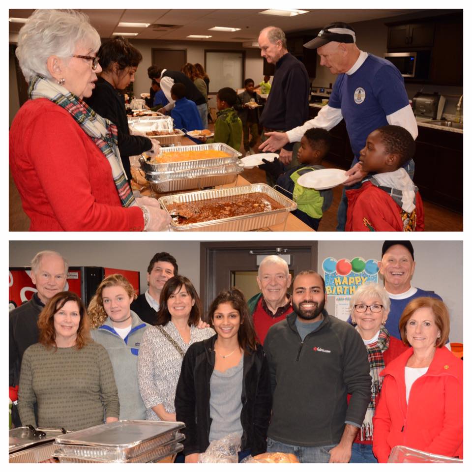 14 Vinings Cumberland Rotarians (and friends) decorated the party venue with festive decorations and provided and served a delicious Jim N Nick's BBQ feast.