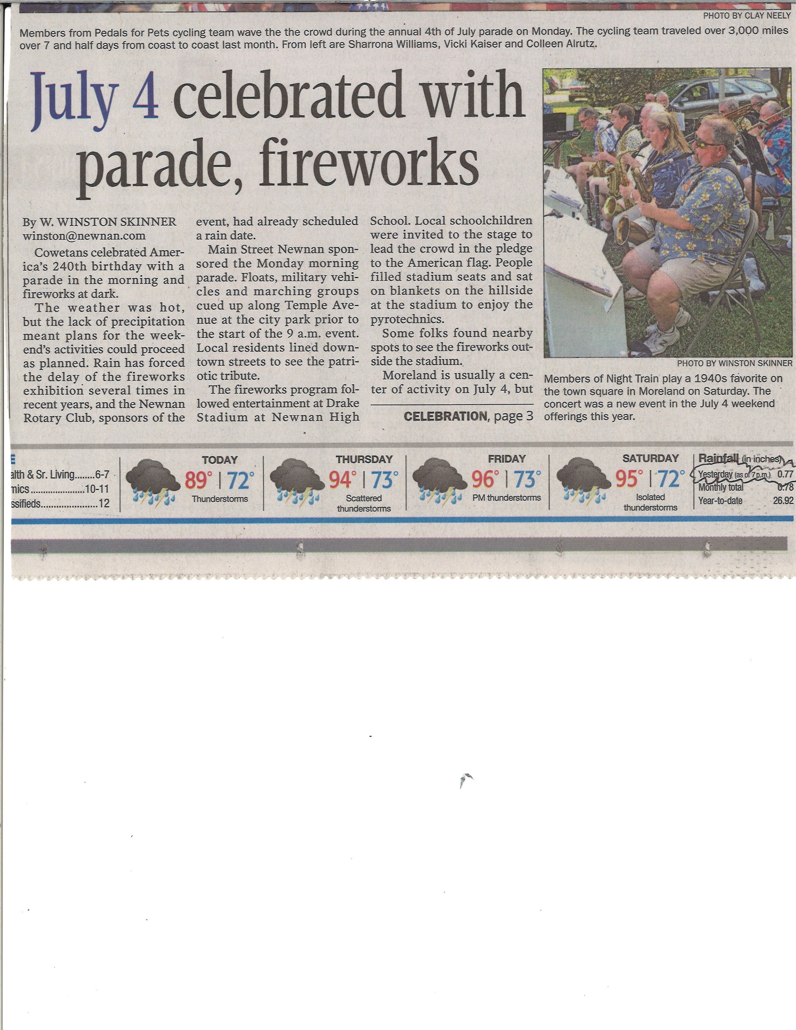 Article that was published on the front page of Newnan Times Herald on July 5, 2016.
