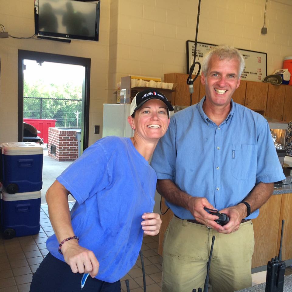 Prepping the concession stand for selling. Rotarians Sandy and Chris get ready for the crowds
