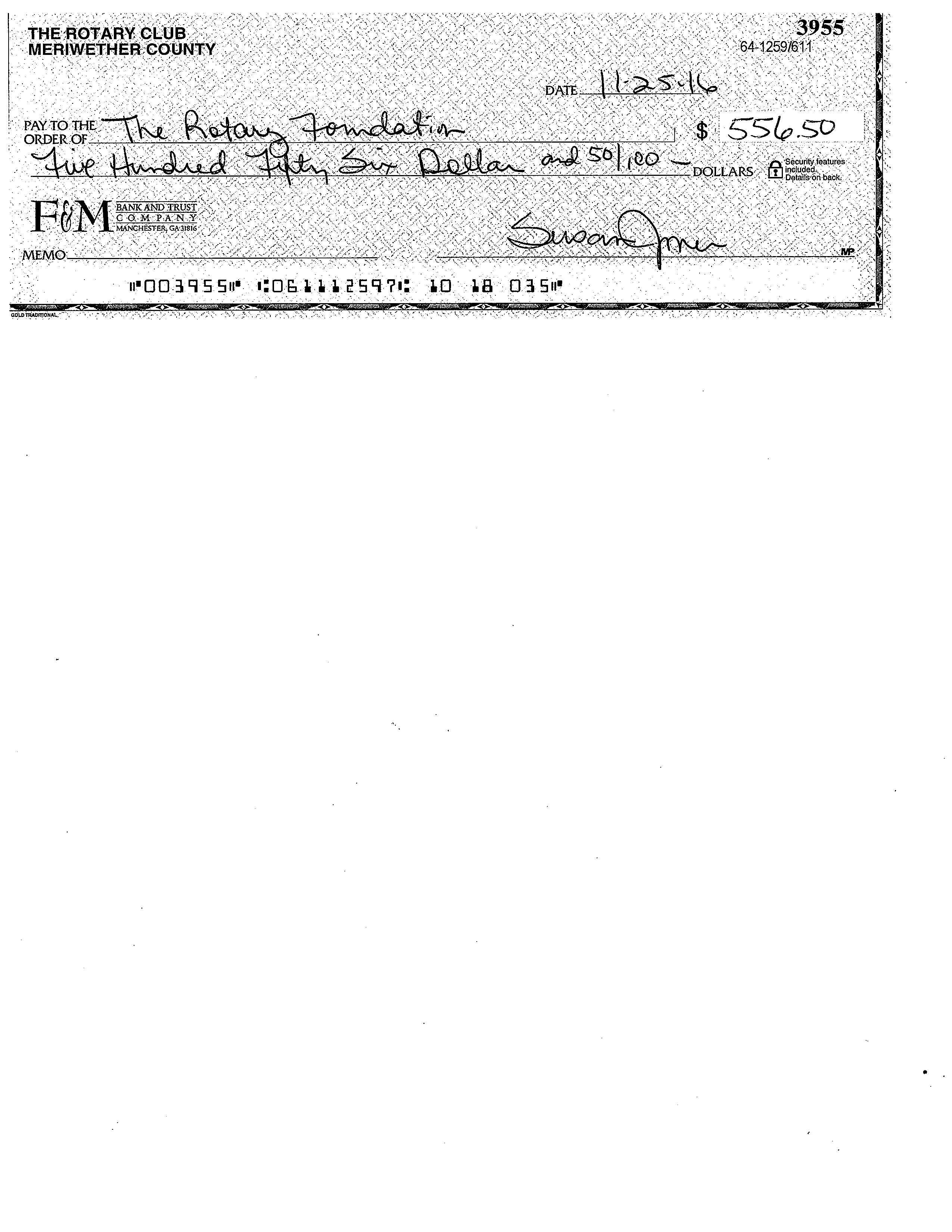 Meriwether Co Rotary Club provides monetary gift towards the Global Grant for Haiti Relief from Hurricane Matthew