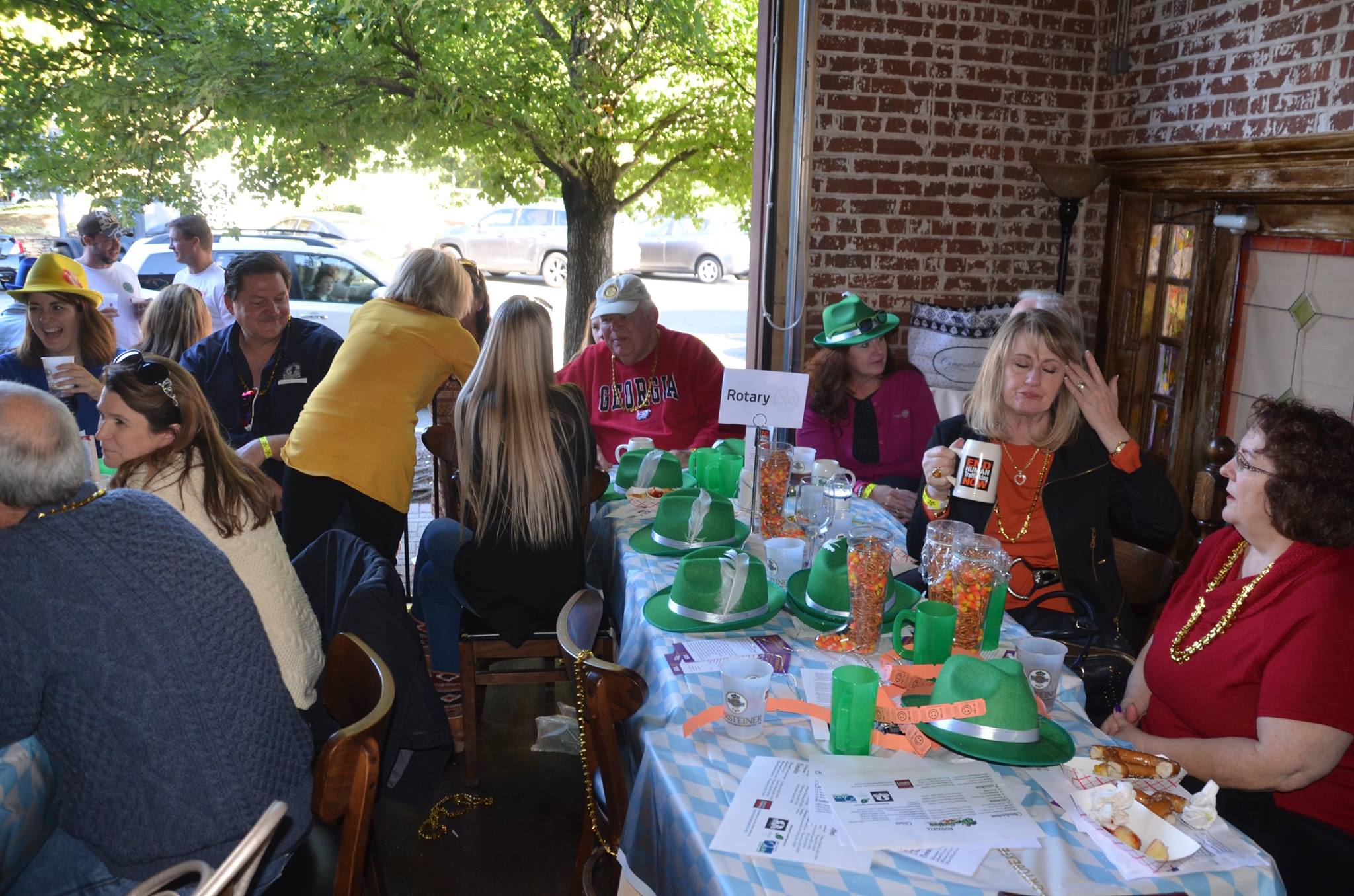 Rotary members enjoying our table, which included decorations, hats, steins and food tickets.