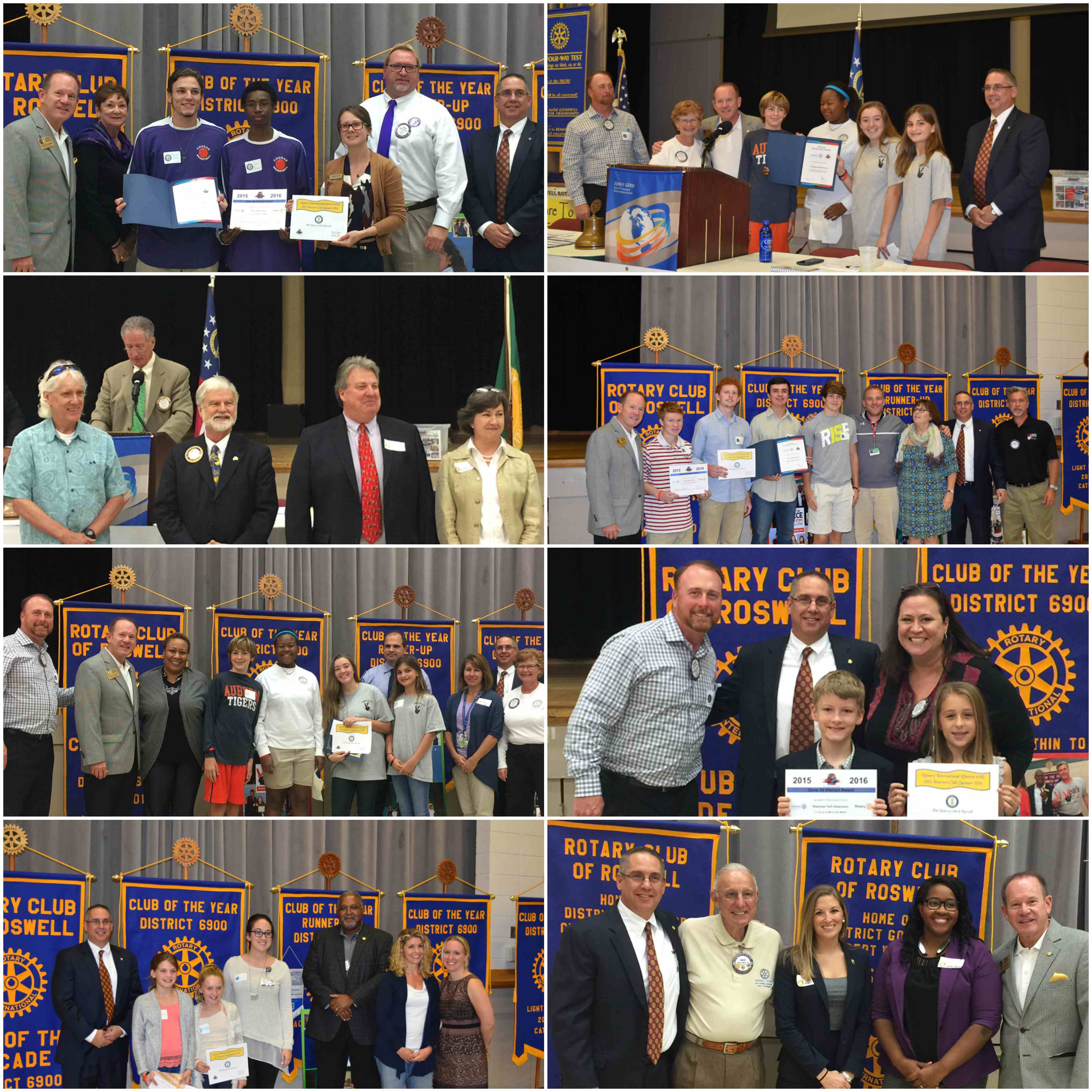 Each month during the school year, Roswell Rotary recognizes a student and teacher in the local community schools who demonstrates leadership and outstanding academic achievements. Each student and teacher is presented to the club at a regular meeting and is provided with a certificate of achievement. Additionally the club awards a Visa gift cards and a gift certificate to Mathnasium for each student and teacher.