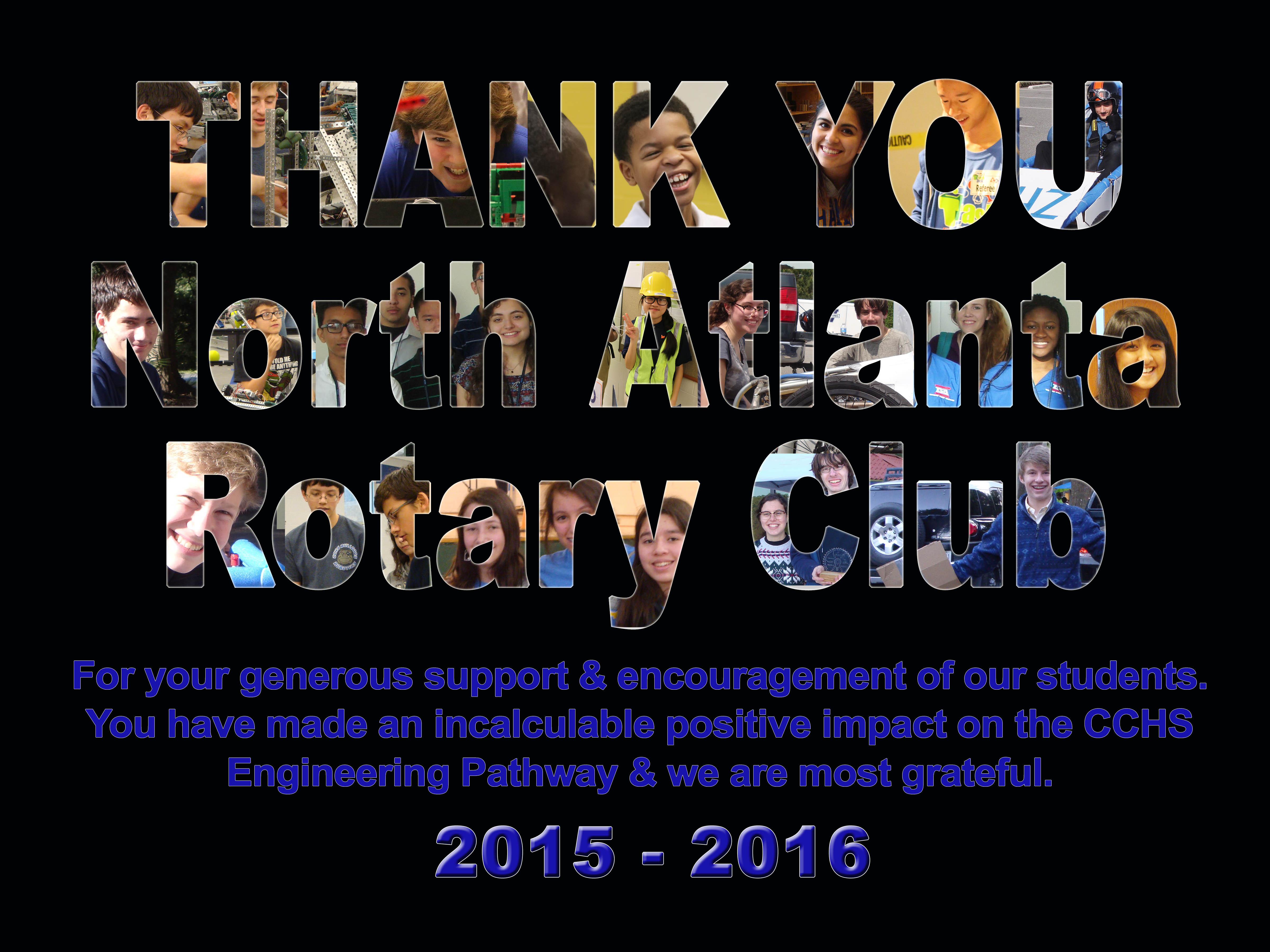 NA Rotary Club's 2016-17 District Grant funds supported the Chamblee Charter High School (CCHS) VEX Robotics and Electric Car programs. We are providing needed funds to underwrite the cost of additional equipment offering upgrading opportunities to both the robots and electric cars students build. Both programs continue to expand drawing creative and inquisitive students into the program. The Electric Car program is now the model for all DeKalb County Schools.