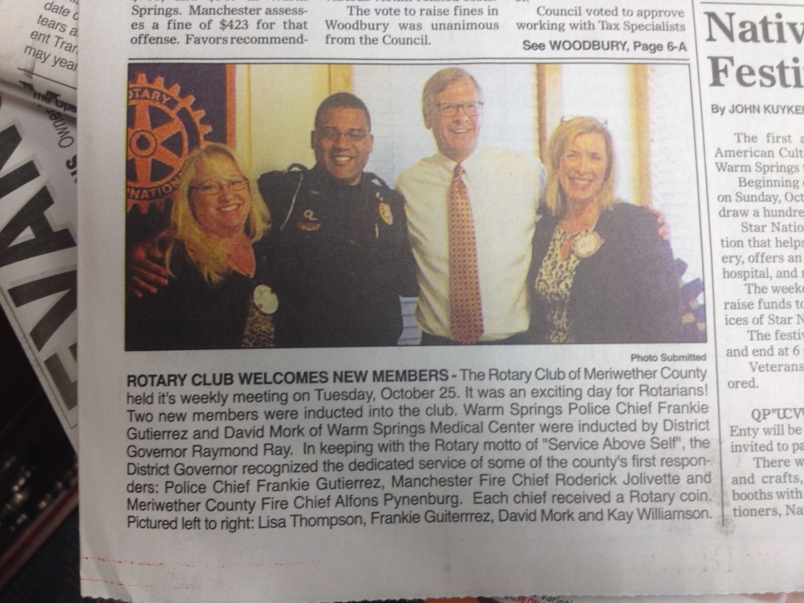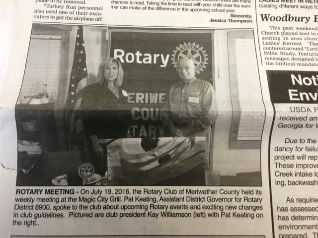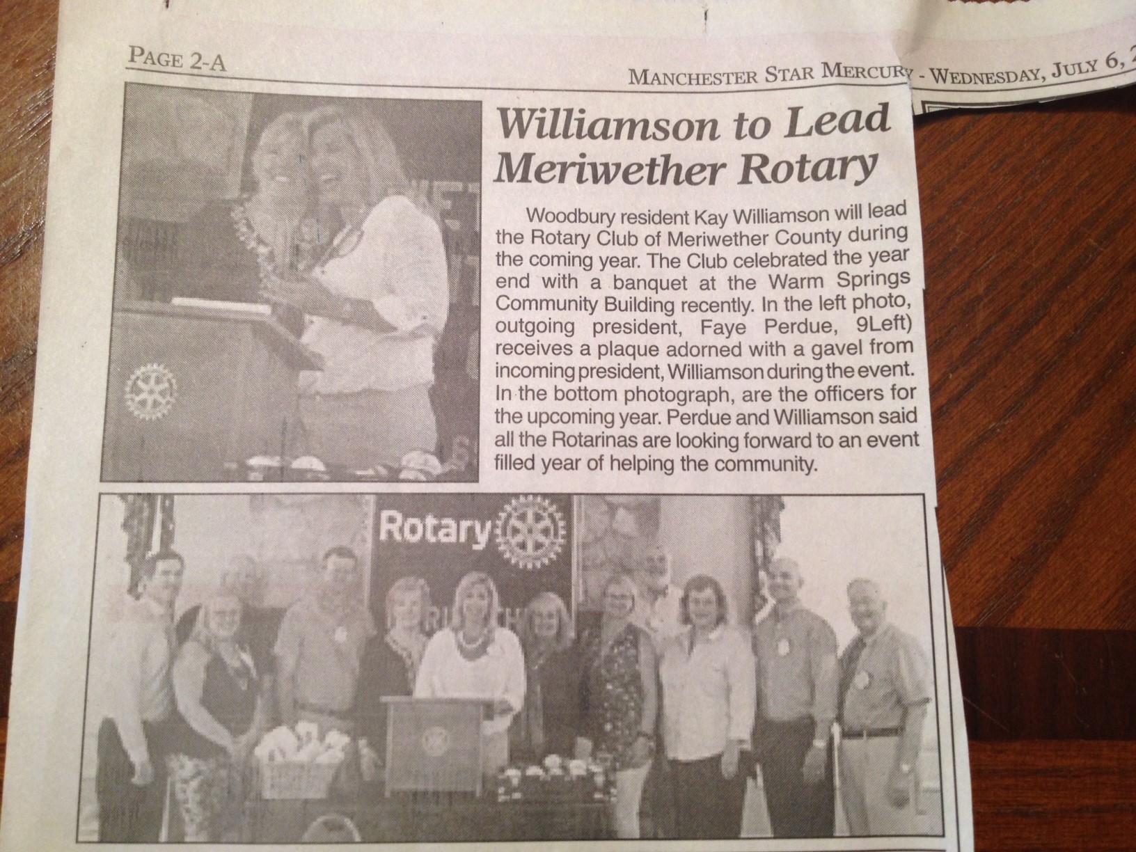 Meriwether Co Rotary Club promotes Rotary throughout the County and beyond by placing articles in the local weekly Meriwether Co Newspapers: (The Star Mercury and the Vindicator.)