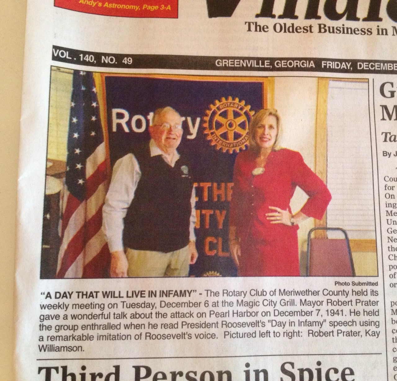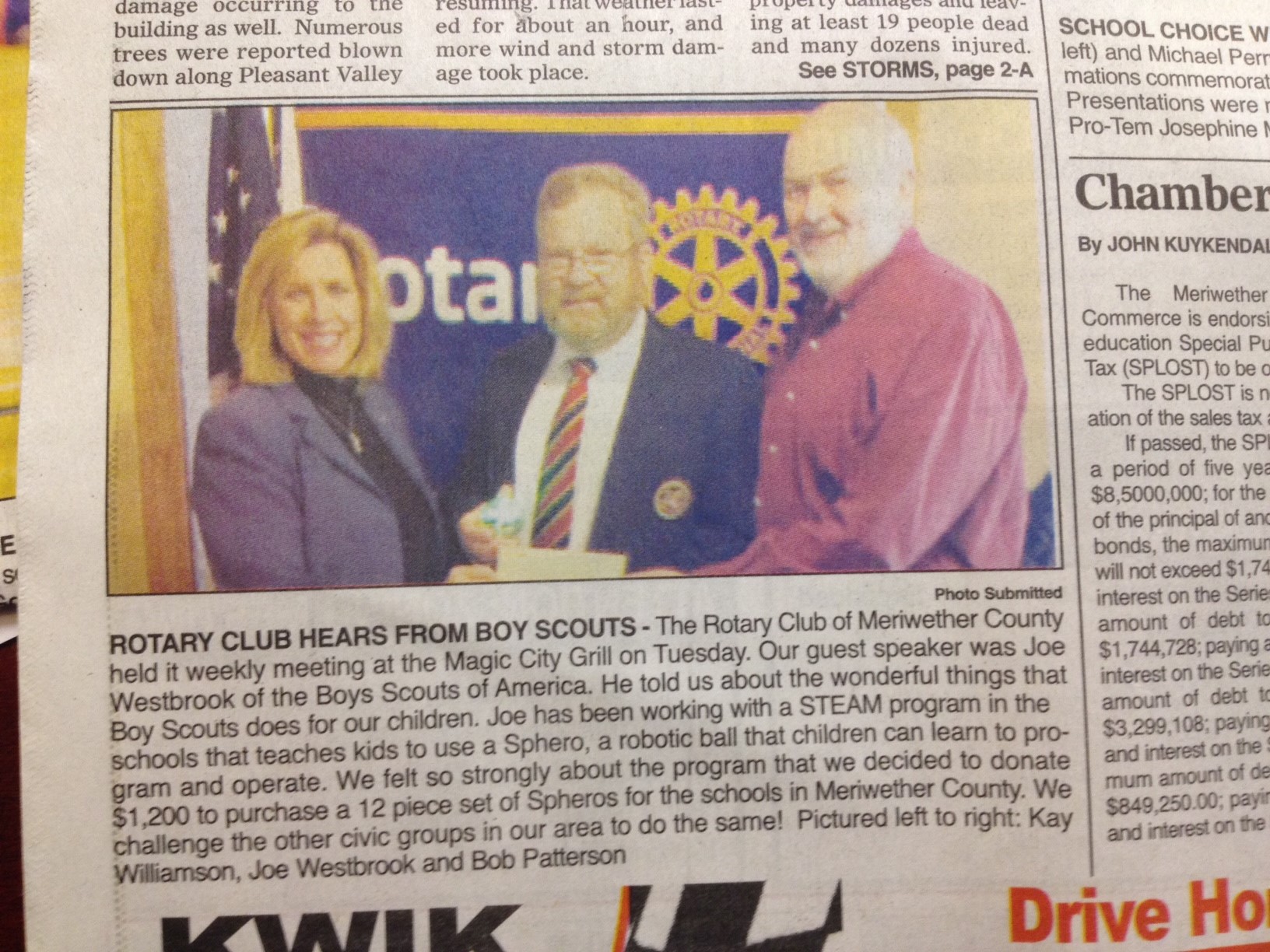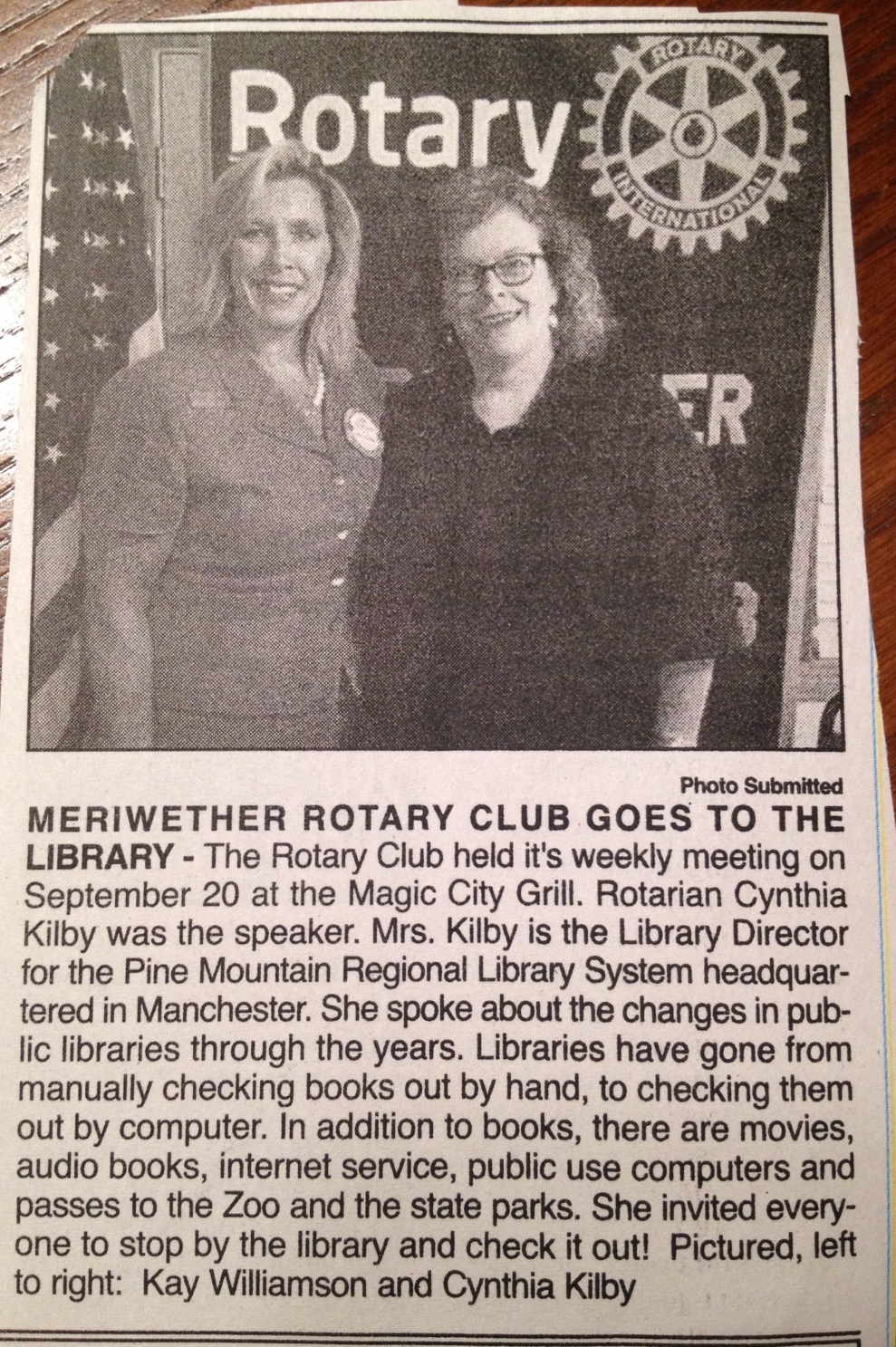 Meriwether Co Rotary Club promotes Rotary throughout the County and beyond by placing articles in the local weekly Meriwether Co Newspapers: (The Star Mercury and the Vindicator.)