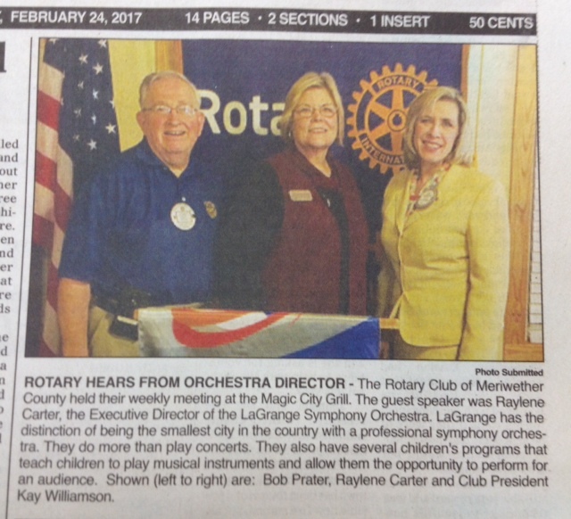 Raylene Carter the Exec Director of the LaGrange Symphony Spoke to Club on Feb 21 2017