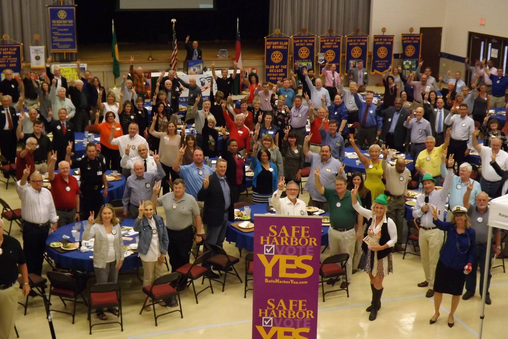 Roswell Rotary members showing their support for Safe Harbor at a recent meeting.