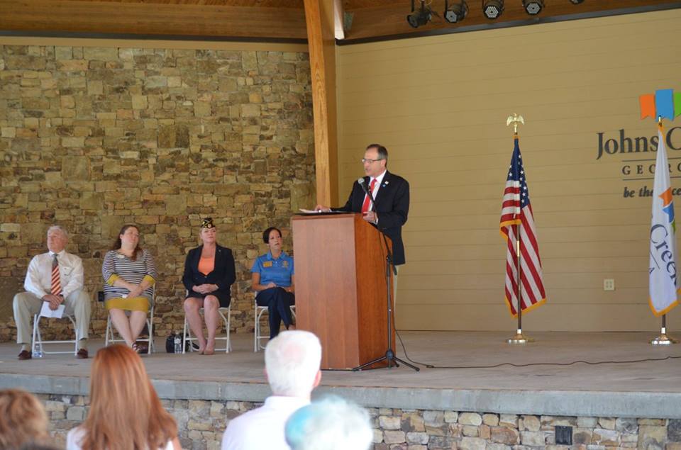 The remembrance event featured remarks by Johns Creek Mayor Mike Bodker and an appearance by Johns Creek Fire and Police departments.