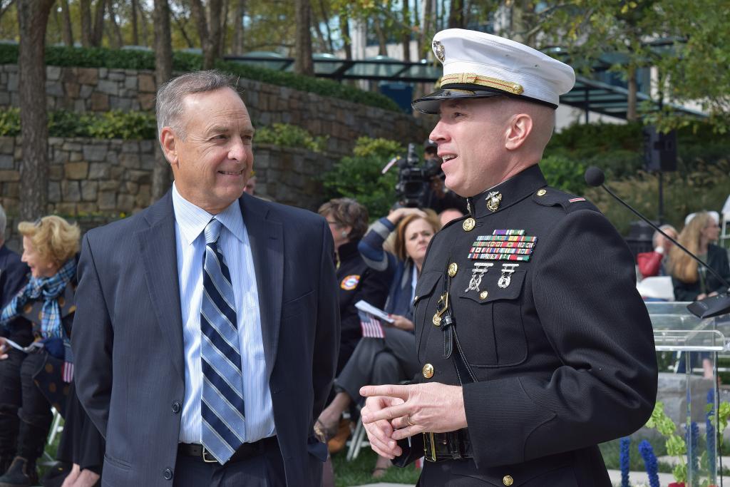 The Rotary Club of Sandy Springs volunteered during the City of Sandy Springs' annual Veterans Day commemorative event. The club has volunteered for the past 6 years. The City of Sandy Springs hosted this annual Veterans Day Tribute on Friday, November 11, 2016 beginning at 11:30 a.m. to honor those who serve and served our country. The event takes place at the Veteran’s Memorial located at the Concourse Corporate Center next to the Queen Building (Building Five). Former WSB News Anchor John Pruitt was the event's emcee. Sandy Springs resident and Purple Heart recipient, CW05 Edwin E. Harman, III, USMC was the keynote speaker.