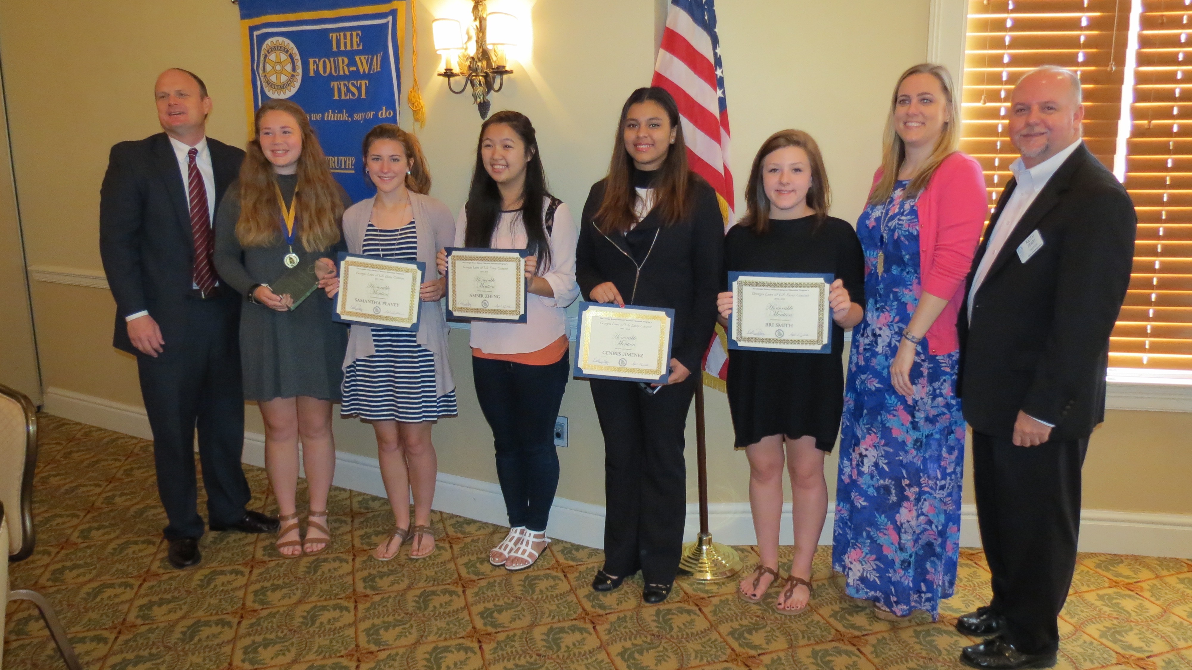 THE GEORGIA LAWS OF LIFE ESSAY CONTEST ASKS STUDENTS TO SELECT THEIR OWN LAW OF LIFE , AND WRITE ABOUT HOW IT APPLIES TO THEIR LIVES. WE ASK ALL OF OUR LOCAL STUDENTS TO WRITE ESSAYS AND SUBMIT THEM. A COMMITTEE SCORES AND LETS THE CLUB KNOW WHO THE TOP STUDENTS ARE. WE THEN INVITE THEM TO OUR MEETING ALONG WITH THEIR PARENTS, TEACHERS AND SCHOOL OFFICIALS. WE PRESENT THEM WITH AN AWARD AND HAVE THE WINNER PRESENT THEIR ESSAY DURING THE ROTARY MEETING.