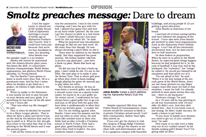 John Smoltz speaks to Alpharetta Rotary on staying focused on