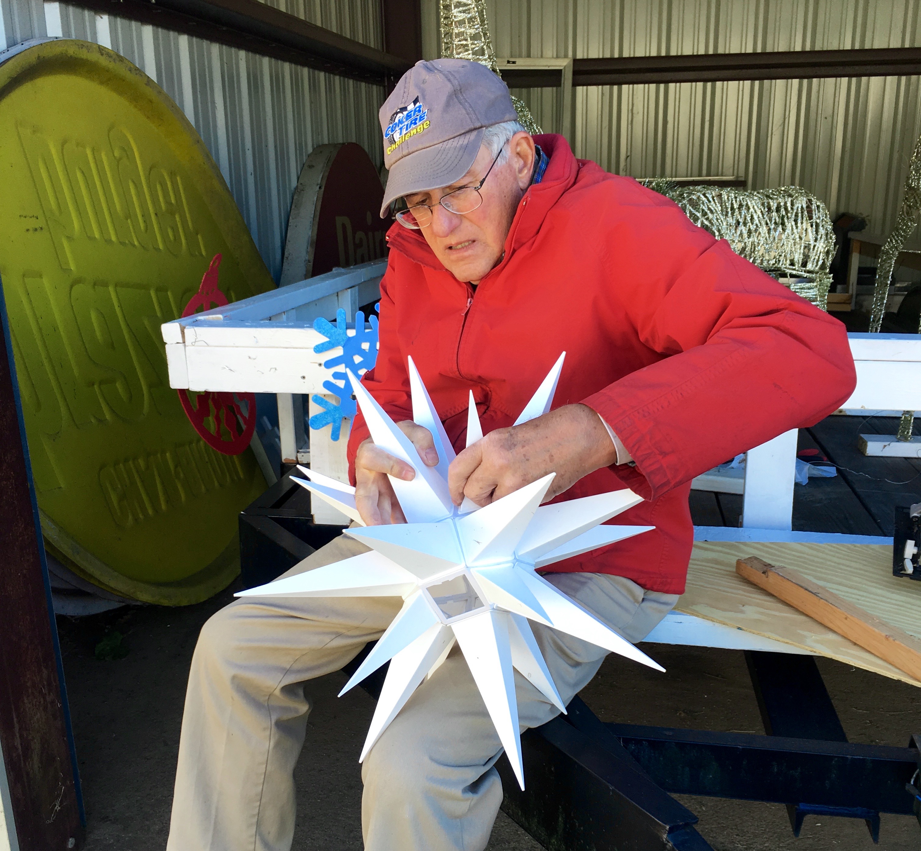 Construction was started in early November and was completed for the December 1st parade. To save both money and resources we have been using our original structure each year, redesigning it to align with the current theme, this year it became a stable. Interact students worked along with Rotary club members and were taught how to properly use the power tools and expand on the general theme of the float. Rotarians volunteered their labor, time and materials for this project. Rotary members stepped up throughout this project to offer their time and expertise.