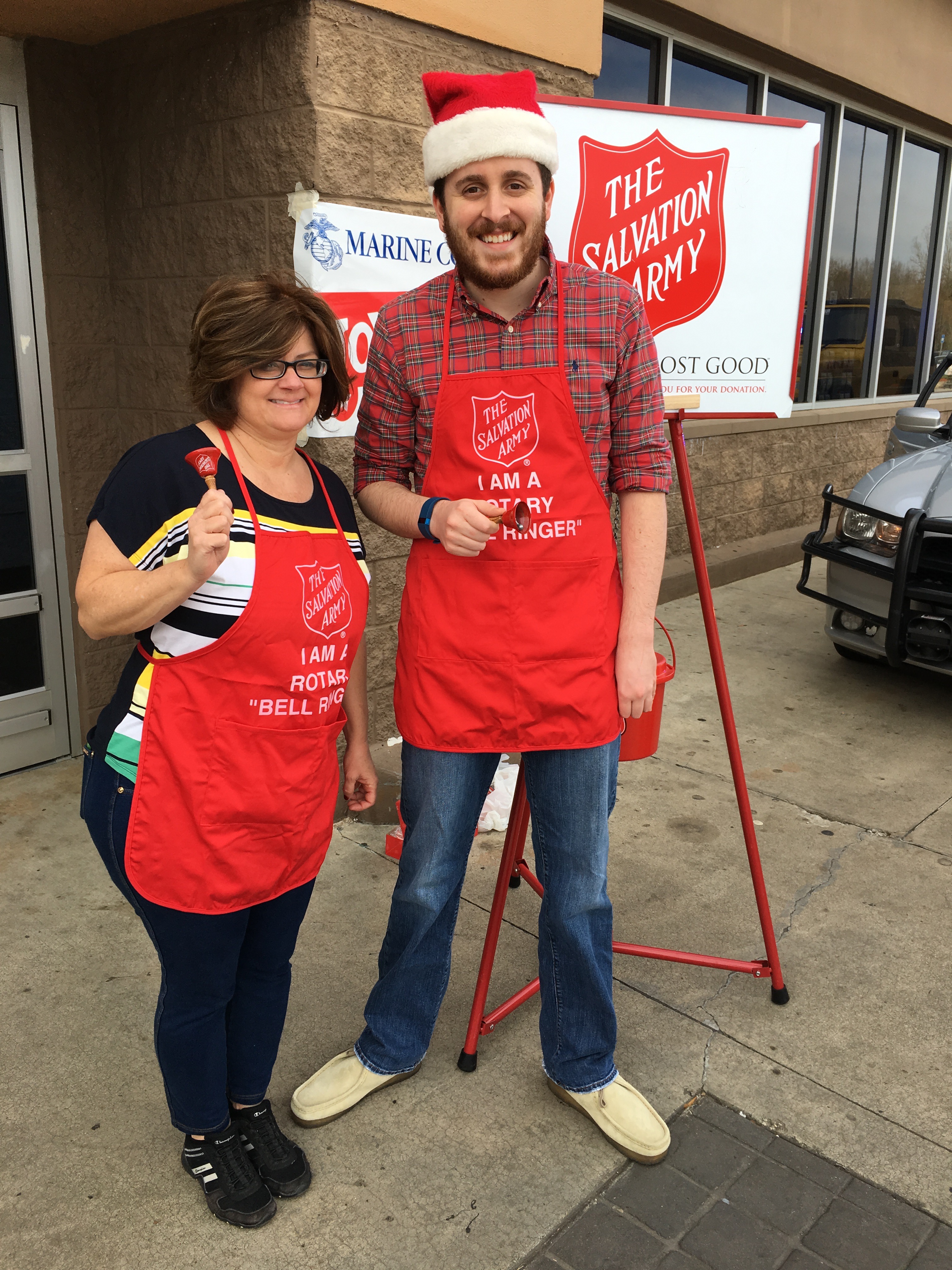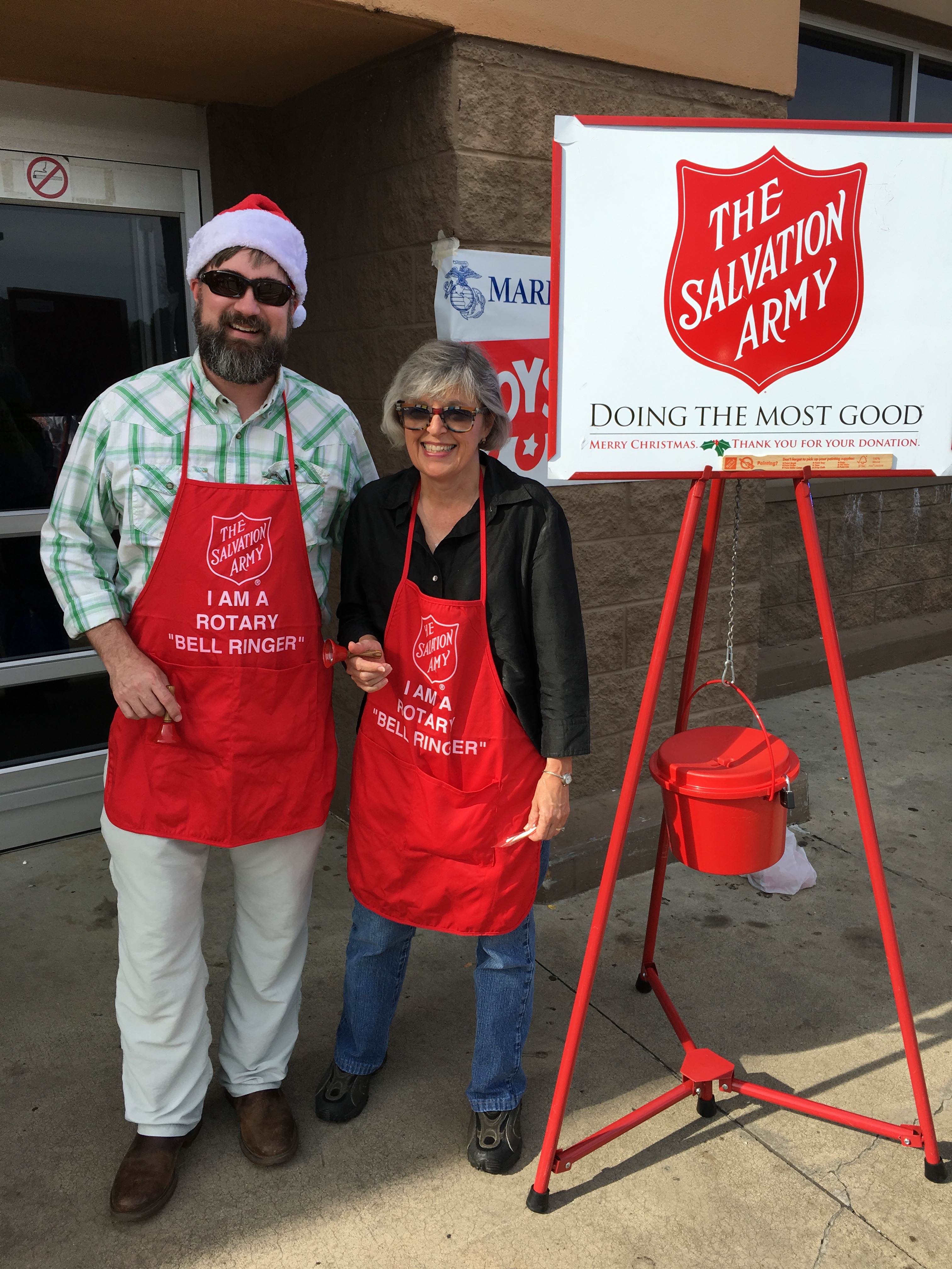 Rotarians Jason and Kaye kept the bell ringing for the Salvation Army.