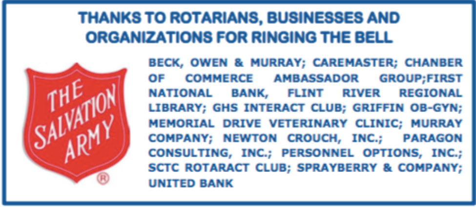 The Rotary Club of Griffin is proud of its continuing partnership with the Salvation Army.