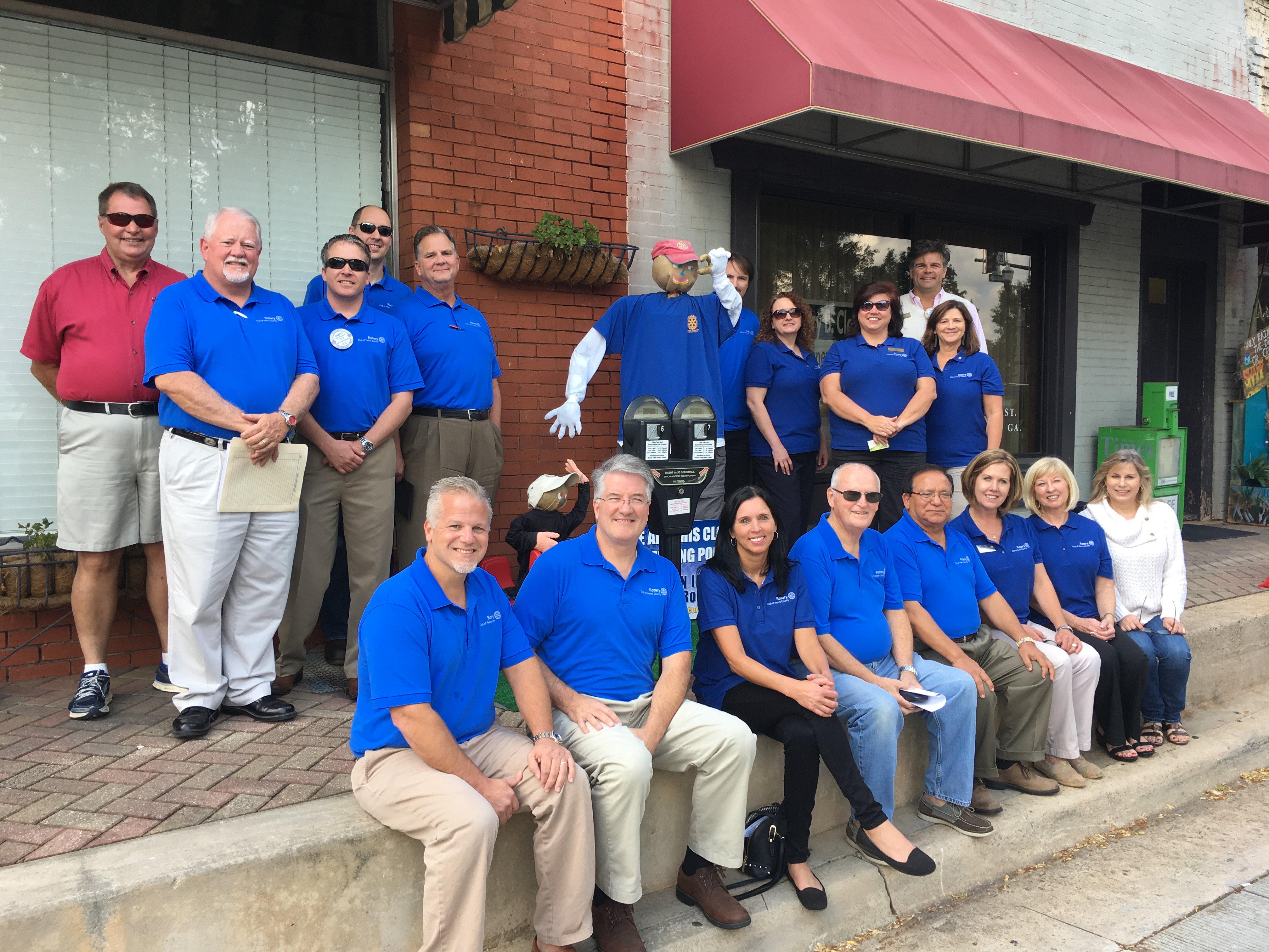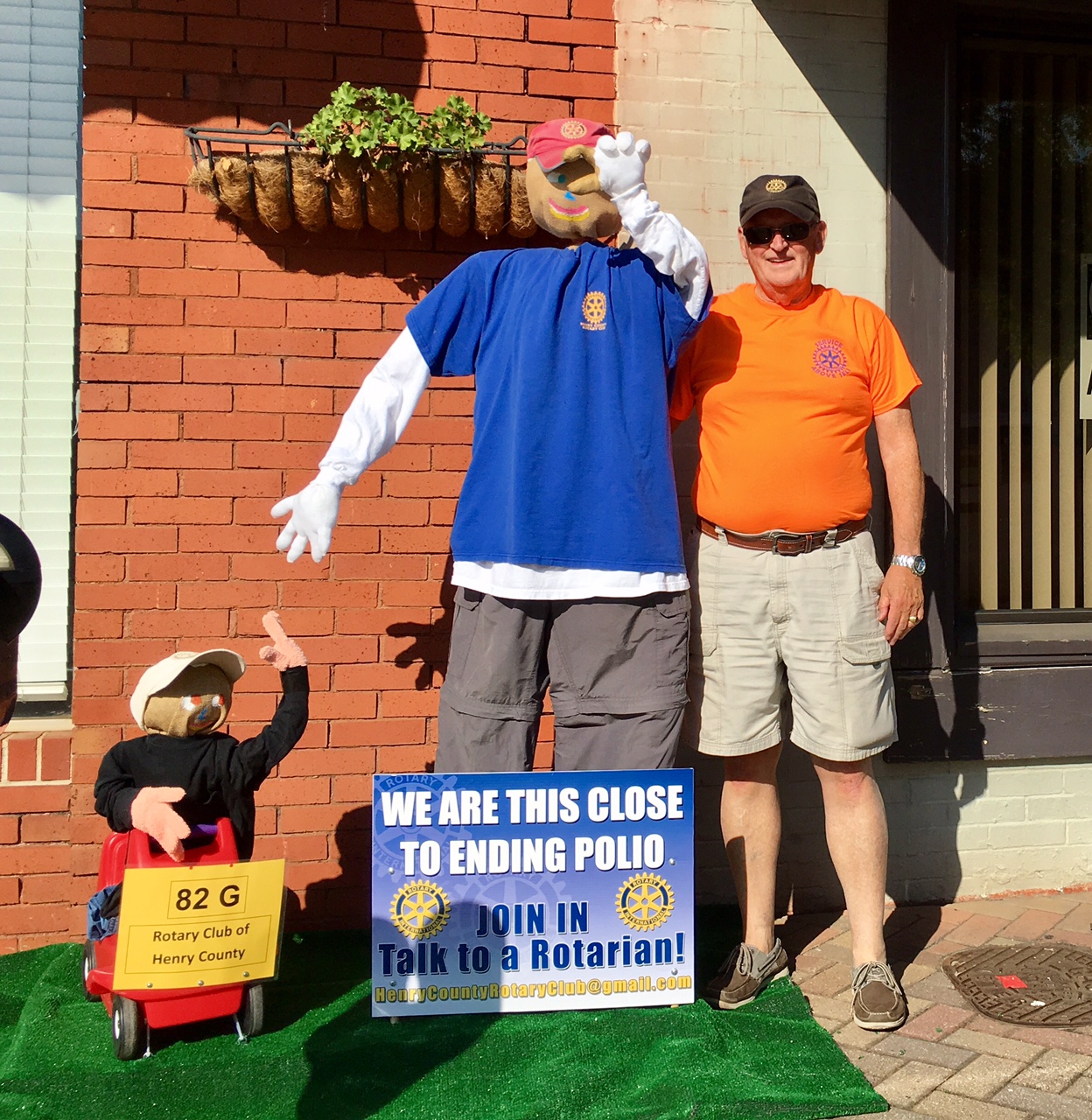 Each year the City of McDonough holds a Scarecrow contest. For the Month of October, business and non-profits rent space on the square and build a scarecrow that is seen my hundreds of locals that come out to see them through out the month. This year our own George Siggins took the lead and built Rotary's first ever entry into the contest. After our club meeting on October 3rd, our club took a group photo with our Scarecrow