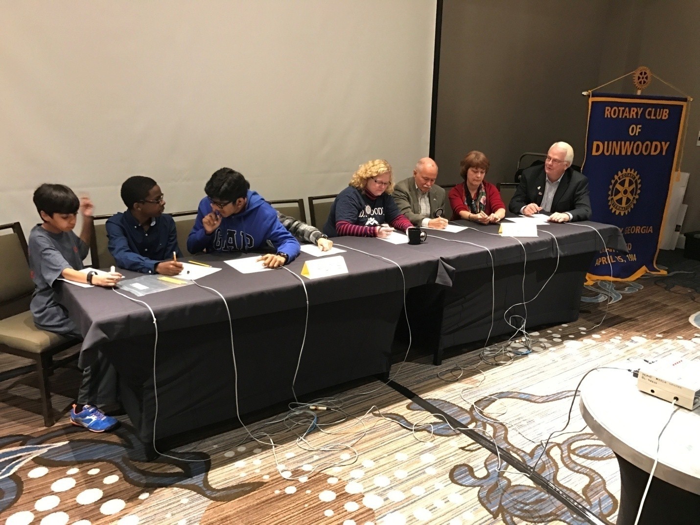 Rick Otness, along with 5 other Dunwoody Roatarians, leads this effort of coaching Peachtree Charter Middle School students for area Quiz Bowl Competitions over a period of 15 weeks. This activity culminates in a club program when PCMS students compete against Dunwoody Rotarians at a weekly club meeting - PCMS is usually the winner!