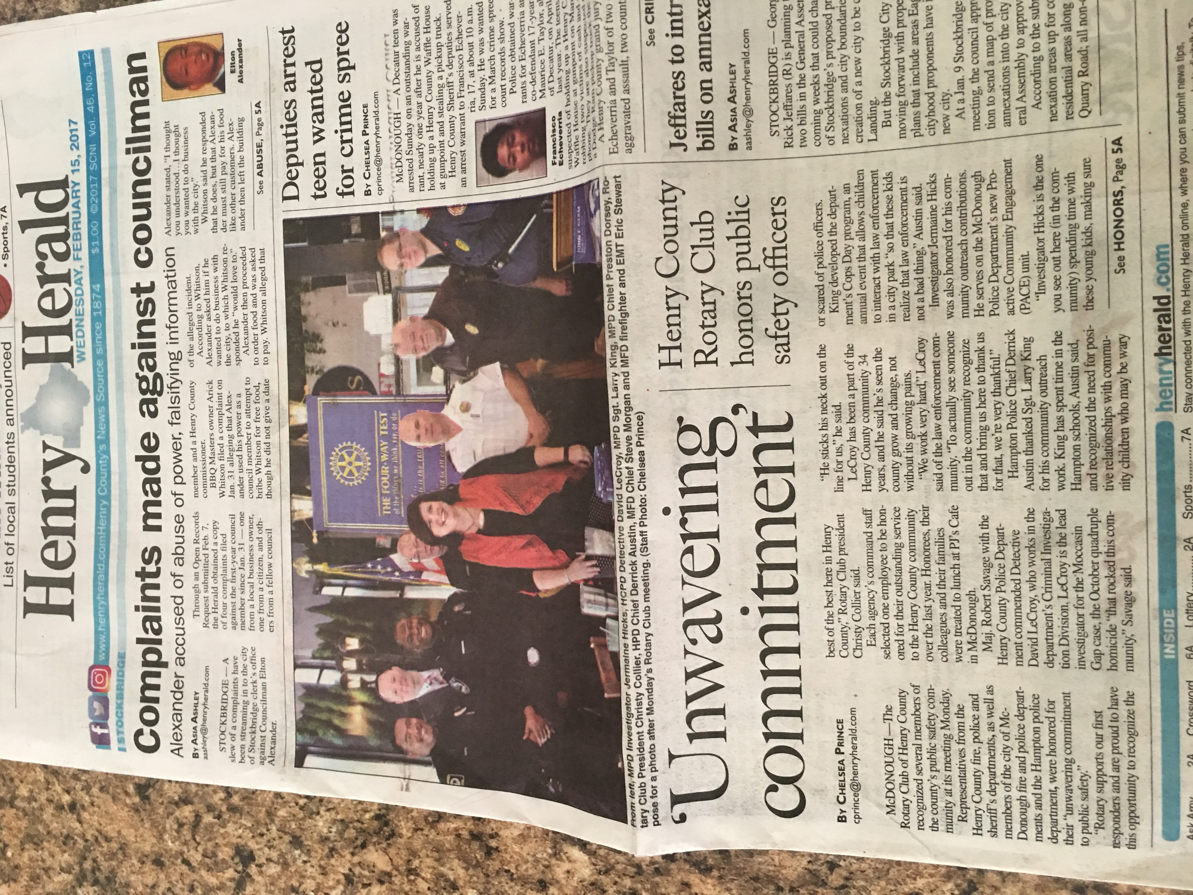 The Rotary Club of Henry County recognized several members of the county’s public safety community at its meeting Monday, February 13, 2017.