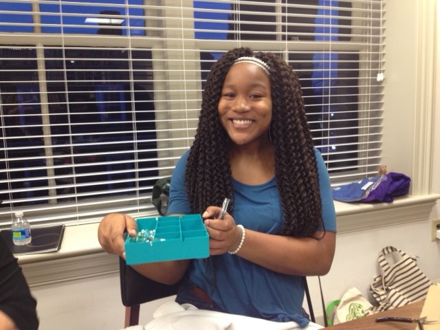 West GA Community Interact Club member Marish showing the materials needed to make bracelets for the Rotary International Convention in Atlanta.