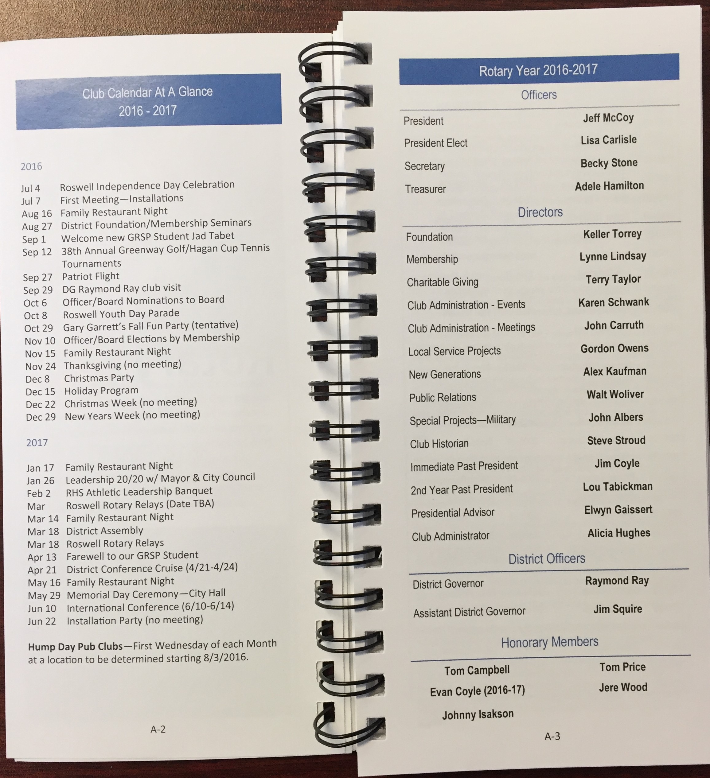 Roswell Rotary has upped our game this year with a member directory that serves our members as an invaluable resource throughout the year. It contains: