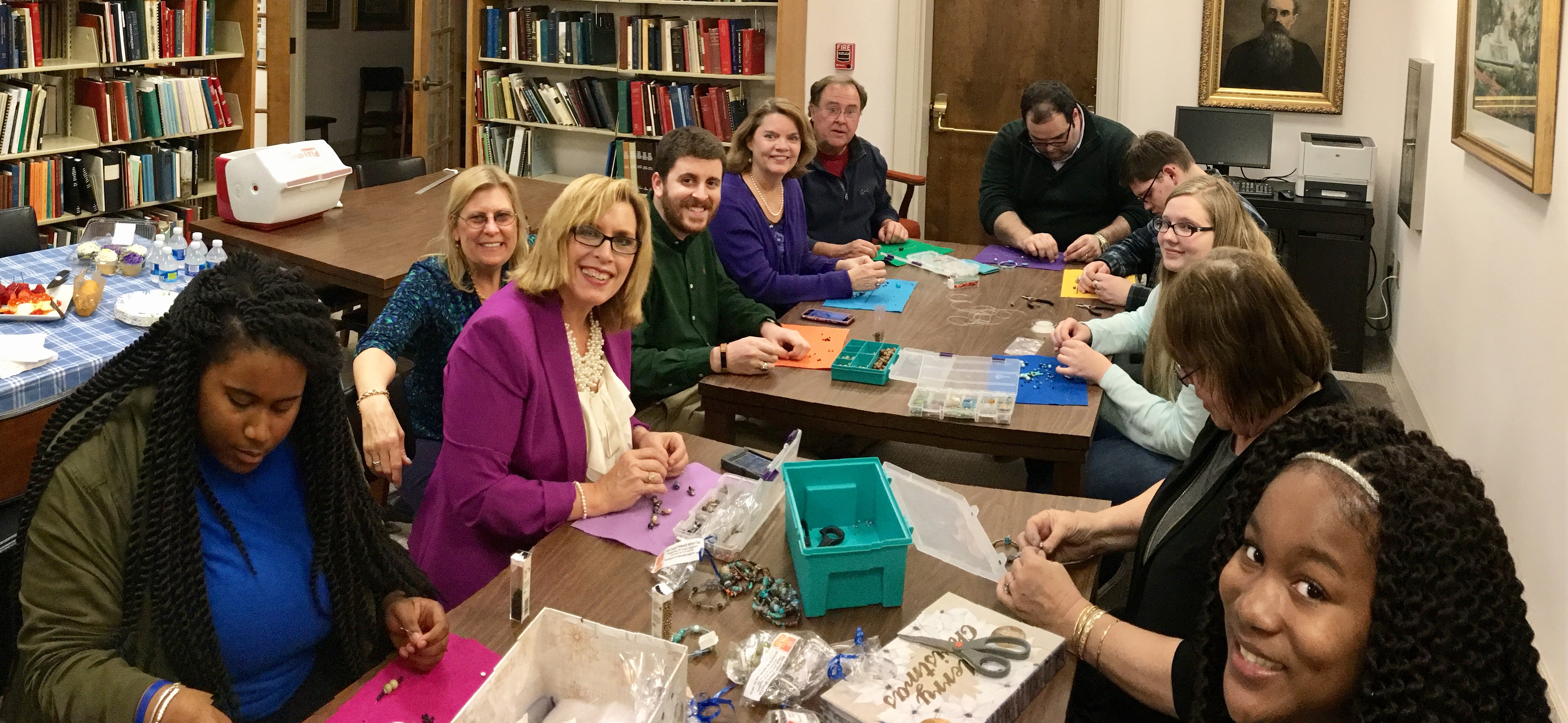 Rotarians and Interactors working together to produce 150 beaded bracelets to be sold to benefit the PolioPlus Campaign at the RI Convention.