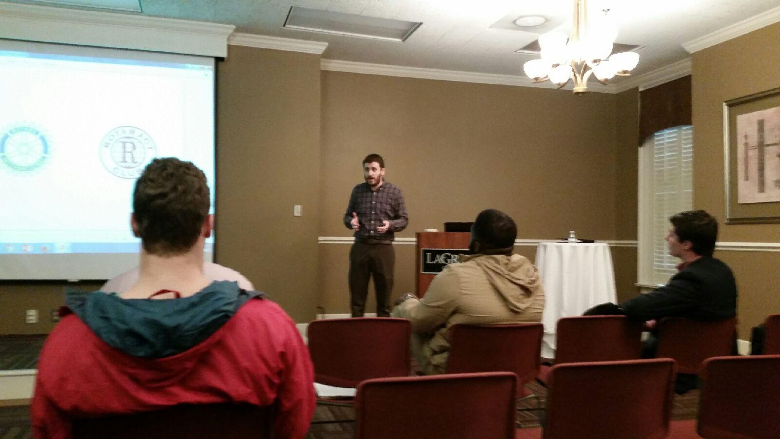 Trae speaking at a recent Rotaract meeting at LaGrange College.