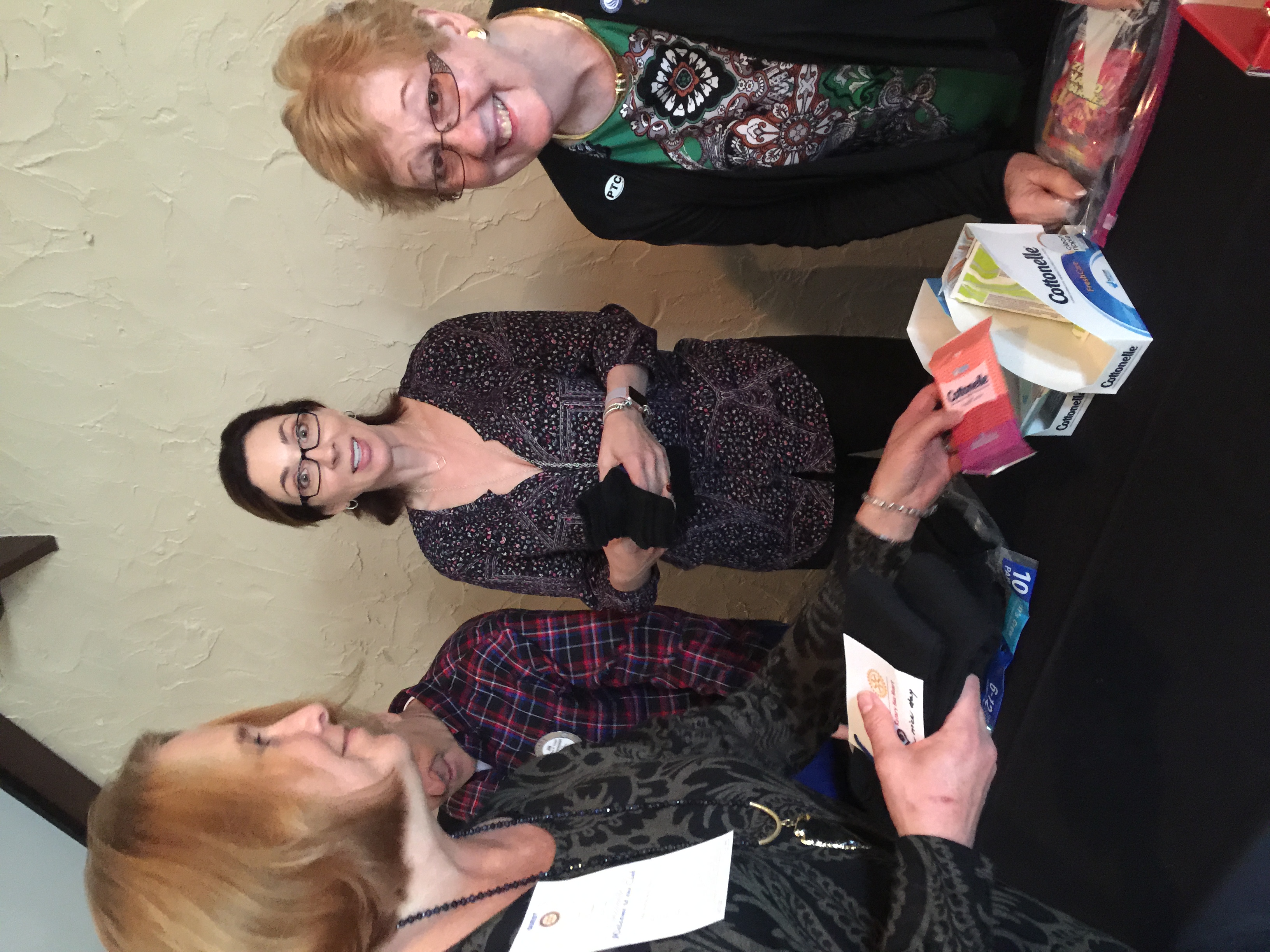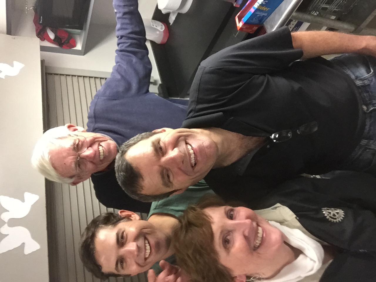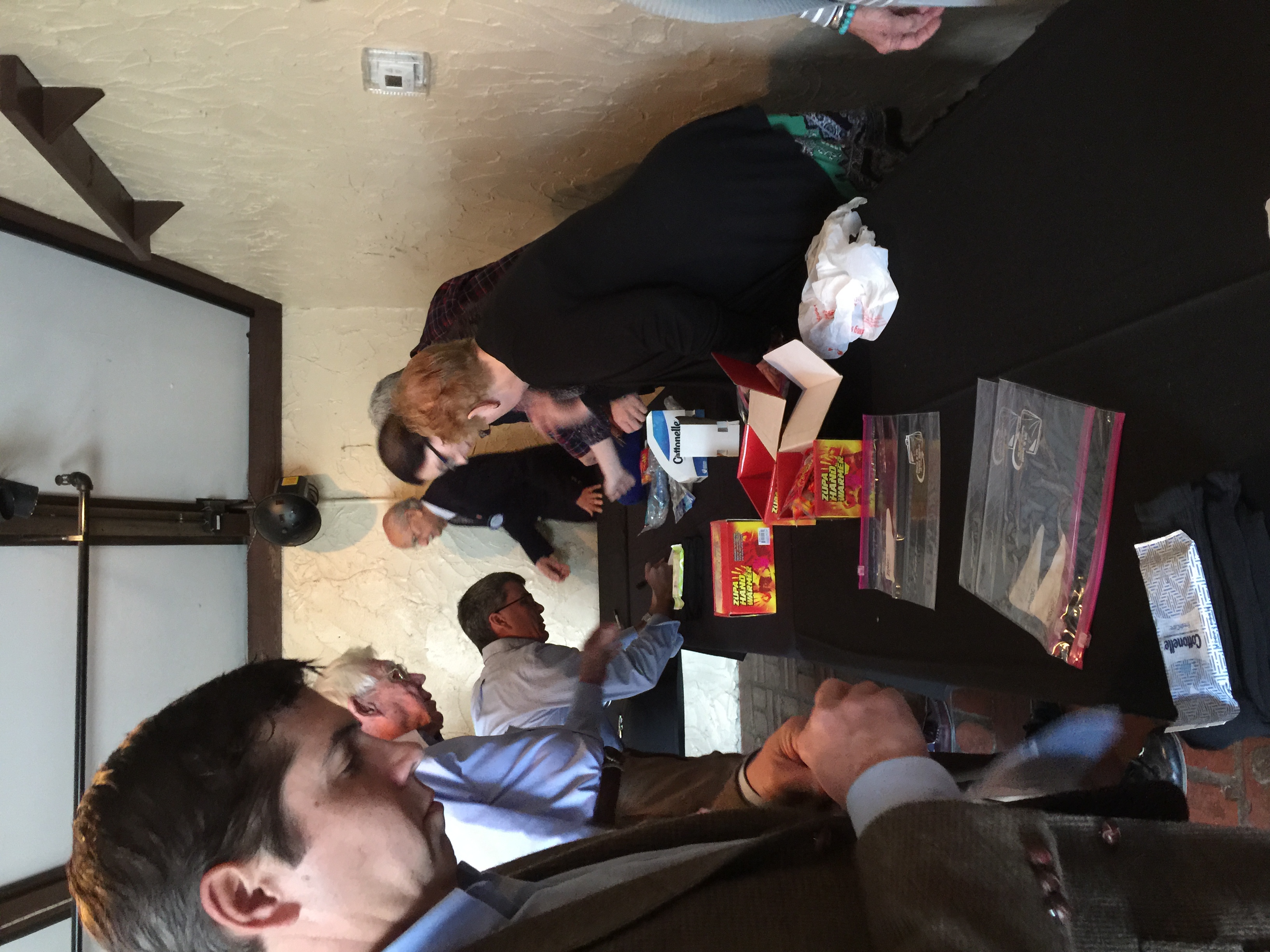At lunch earlier that day club members created a production line to produce 75 goodie bags: two pairs of socks, two hand warmers, a small packet of wipes, a friendly hand written note of encouragement with Rotary Has Heart on it, and put all this into a zip lock baggie. These were given out with the sack lunch the next morning as the men left the shelter for their day. Yes, six of our volunteers stayed the night, spelling each other in two hour shifts, as chaperones.