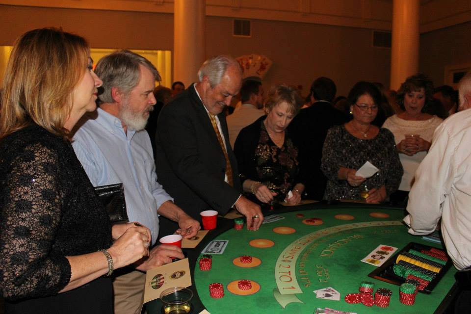 Local businesses sponsor the event at different levels including High Roller, Jackpot, Royal Flush and Full House. Funds raised through these sponsorships, as well as through admission for attendees and silent auction items, is split between both Rotary Clubs. Both Rotary Clubs then take half of those proceeds and donate them to a local organization, such as the Mitchell Baker Service Center in 2015, which is a day service program in our area that serves over 100 adults with developmental disabilities.