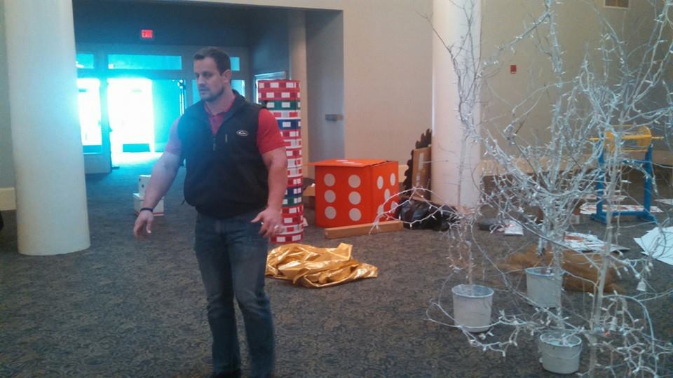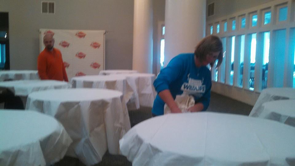 Rotarians spend most of the day Friday preparing for the event Saturday night.