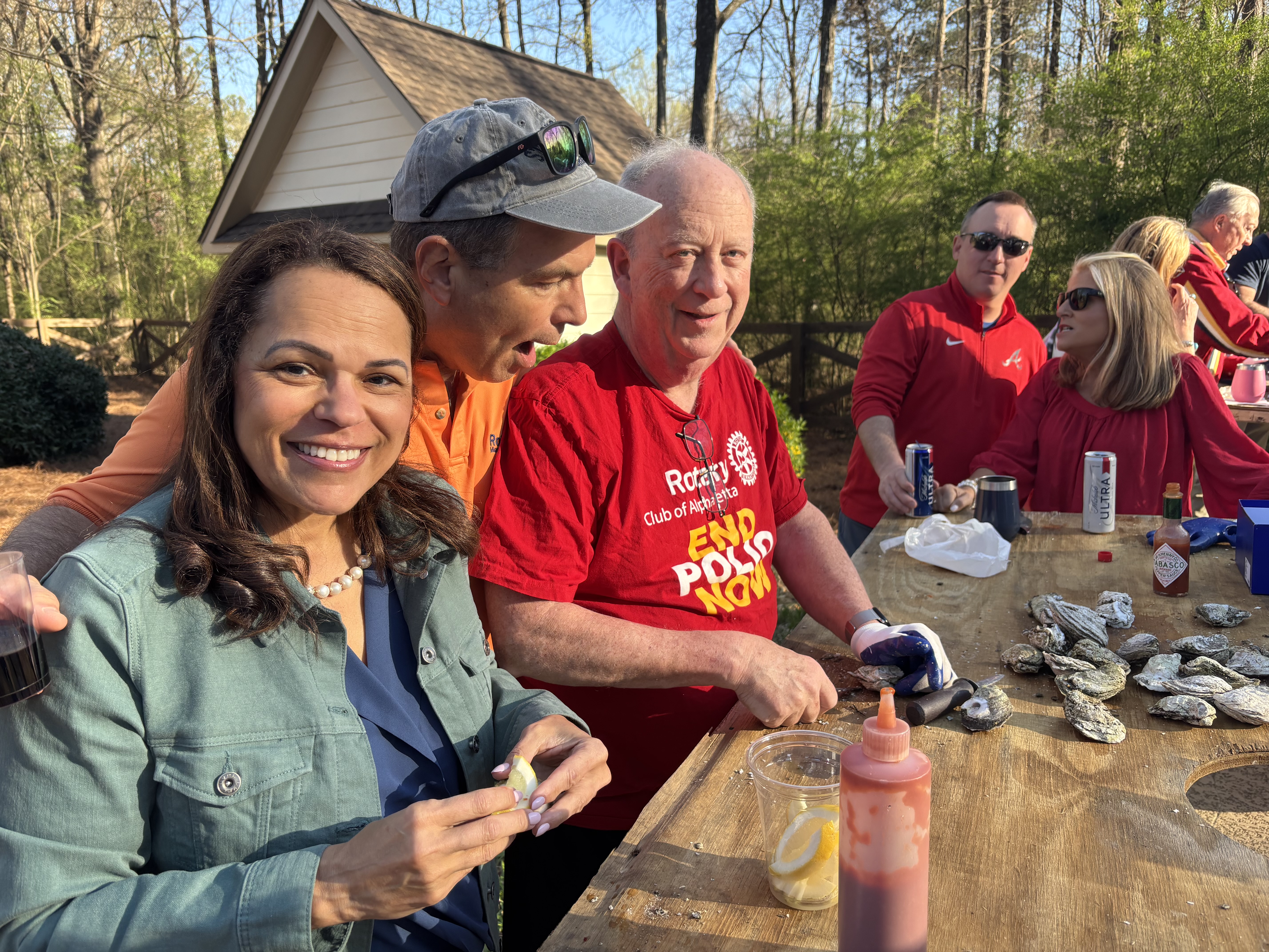Alpharetta Rotary hosted the 10th annual Oyster Roast to benefit Polio Plus.  The event give Alpharetta Rotarians the opportunity for fellowship as well as raising money for Polio Plus netting $3045 which was sent to RI on 3.31.25. Additionally we invited a number of non-rotarians and use this as an additional recruiting opportunity to demonstrate the power of Rotary.