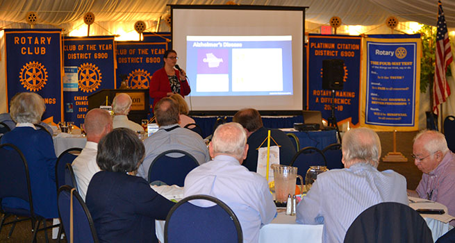 Dr. Laura Szymanski addressing the Sandy Springs Rotary Club.