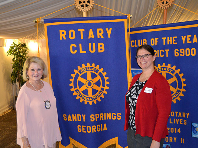 Pictured above: Nancy Schroeder, 2019-2020 President of the Sandy Springs Rotary Club and Dr. Laura Szymanski